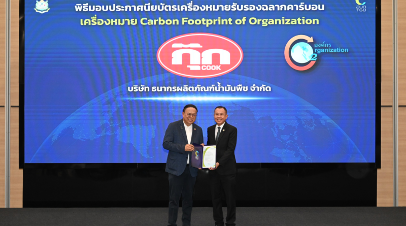 “น้ำมันพืชกุ๊ก” รับมอบประกาศนียบัตรเครื่องหมายรับรองฉลากคาร์บอนตอกย้ำความมุ่งมั่นลดก๊าซเรือนกระจก ก้าวสู่เป้าหมาย Net Zero